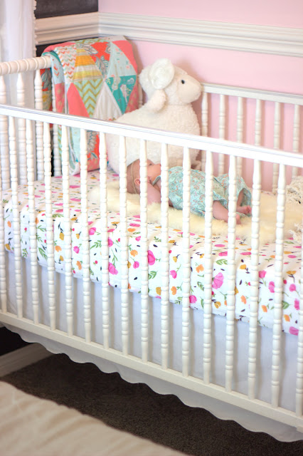 I feel this strange need to caveat this post with a list of excuses why this room isn't exactly the room I had designed in my head – which is silly, I know. There are lots of hand-me-downs and hand made items, the walls were already painted with colors I didn't pick (and honestly it's hard to find the motivation to paint in a rental), and I didn't want to break the budget getting too many new things right now. However, I've had friends and family ask to see Isla's nursery, which I get! I love a good room reveal as much as the next gal. It has been so surreal buying girly things and making a girly room for my BABY GIRL! It's a work in progress, but this is what I have going so far :)